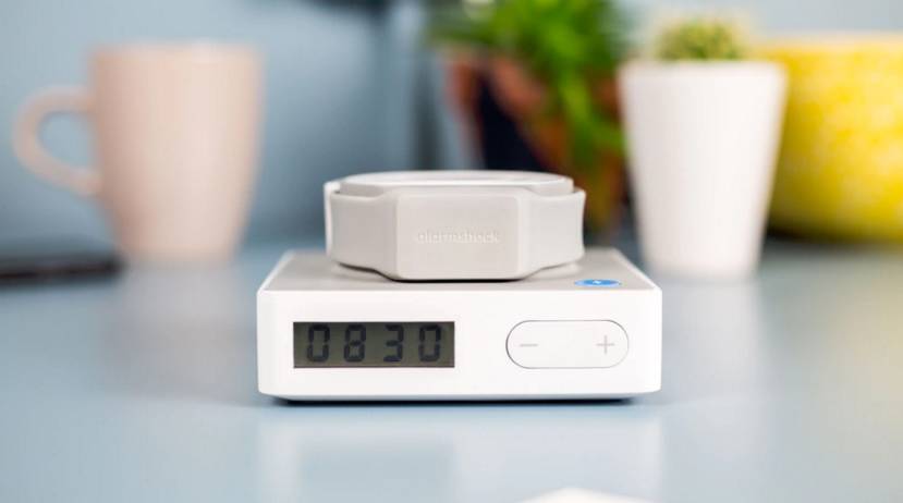 Alarmshock 分别由手环和一个基座两部分组成,其手环看起来很普通,你绝对想不到还有杀伤力,它首先会通过声音和振动提醒你起床。