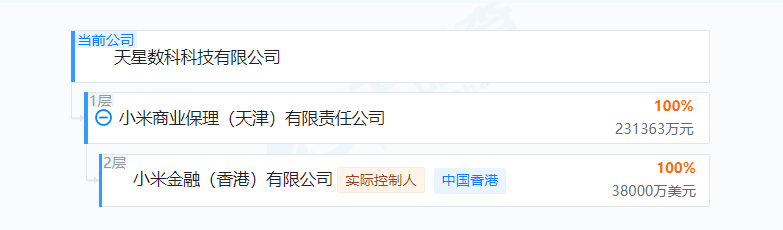 回国后,季春江曾任宜信、天星数科的首席风险官。2022年3月,他加入重庆小米消费金融有限公司(下称“小米消金”)担任董事,同年8月出任小米消金第二任总裁。2024年3月份,曹子玮接替季春江获任小米消金第三任总裁,季春江也重回天星数科担任首席风险官。股权穿透显示,该公司由小米金融(香港)有限公司全资控股。