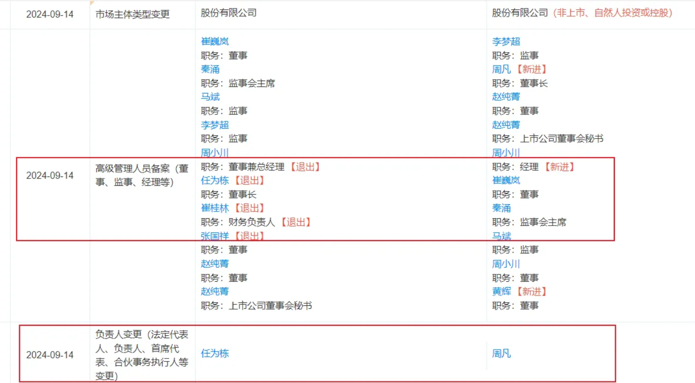 天眼查信息显示,2023年9月起,任为栋还在瀚华金控控股公司瀚华担保公司担任法定代表人,董事兼总经理,2024年9月14日退出。同一天,张国祥退出了瀚华担保财务负责人一职。