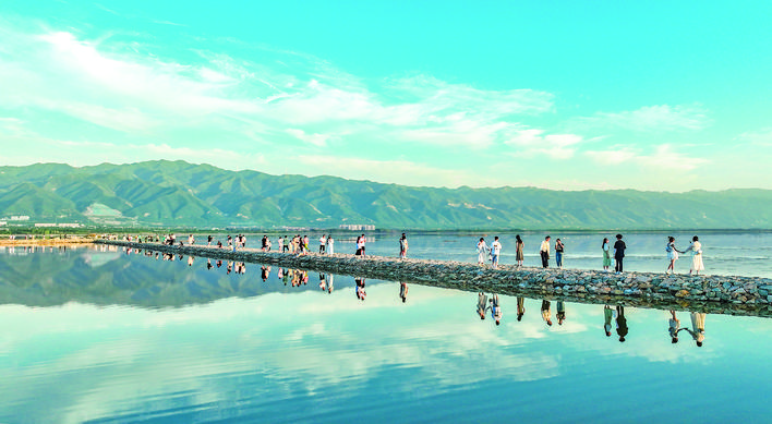 领袖嘱托在盐湖岸畔久久回响。坚持保护优先,绿色发展,做好“退盐还湖”后半篇文章,全面推进盐湖生态保护与开发利用工作……两年来,全市上下锚定“一城两区三门户”目标和思路,紧扣山水城融合发展,坚持“生态筑基、文化铸魂、融合赋能”三维联动,让这座曾以中国“死海”闻名的工业盐湖焕发新生,转型为热门旅游地和黄河流域生态保护的示范样本,持续推动千年盐湖焕发新光彩。