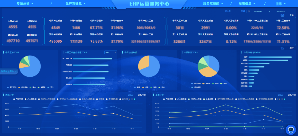 在济南市2024-2025采暖季运行期间,该系统累计处理AI热线电话49万通,AI办理率达76%,有效缓解了人工座席压力,显著提升了服务覆盖与响应能力。