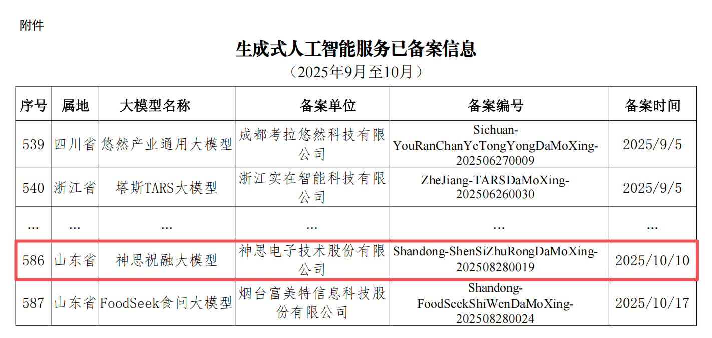 目前,神思祝融大模型通过国家网信办生成式人工智能服务备案,并入选山东省人工智能大模型典型应用案例及山东省首批人工智能大模型“百景智能”典型应用场景,在济南、北京、天津、滨州等地热力企业落地使用。