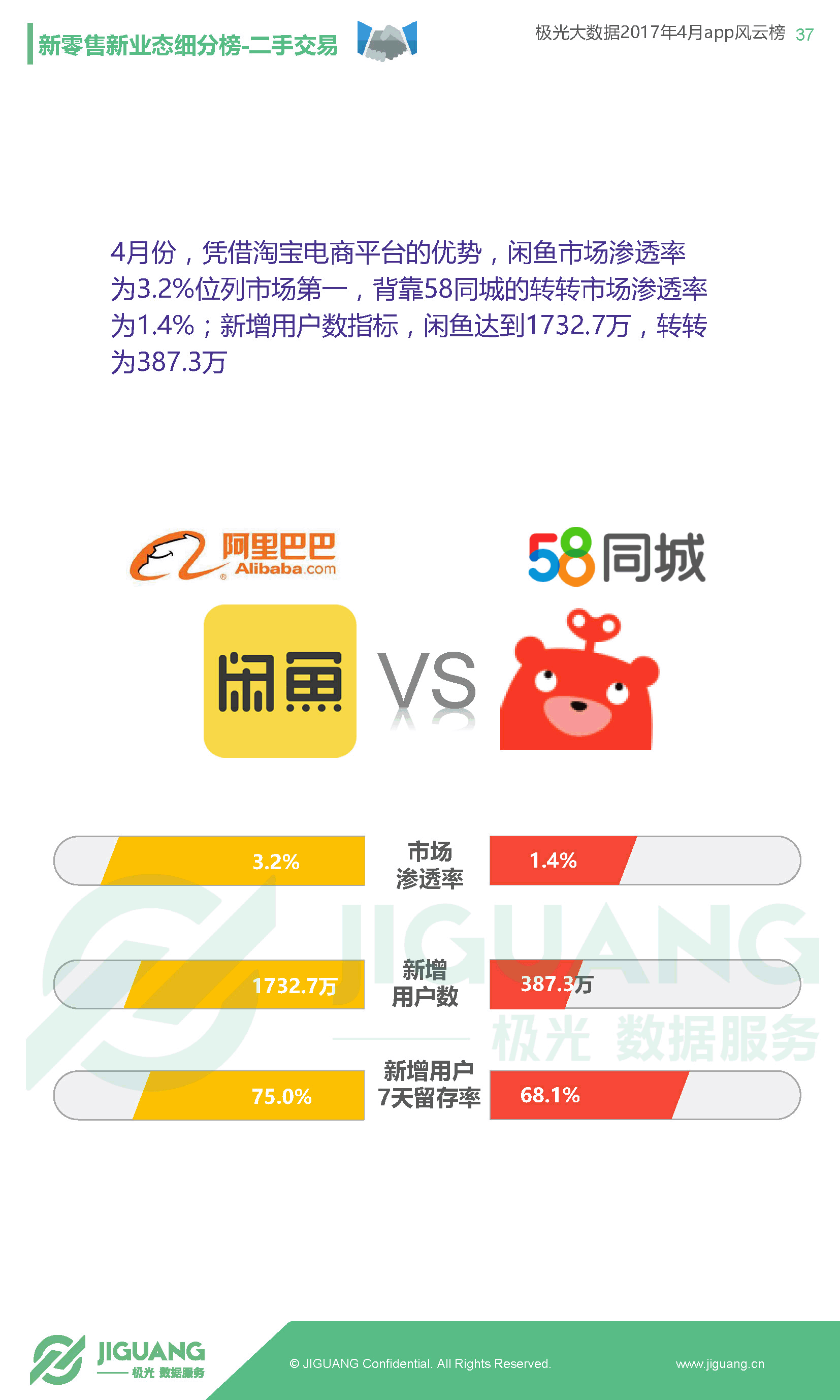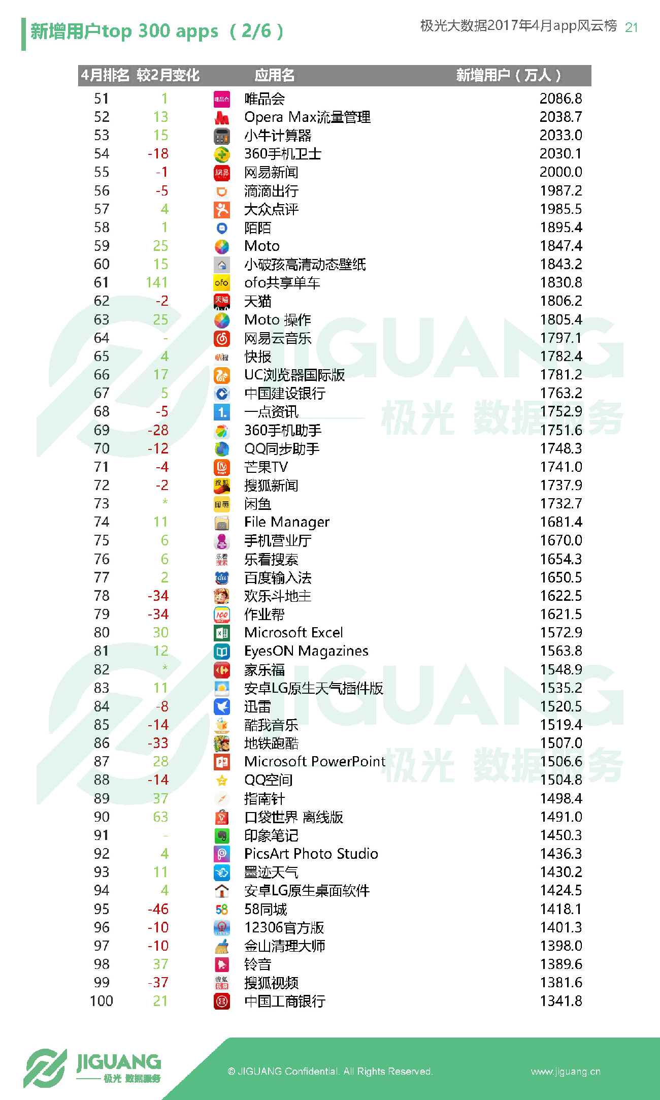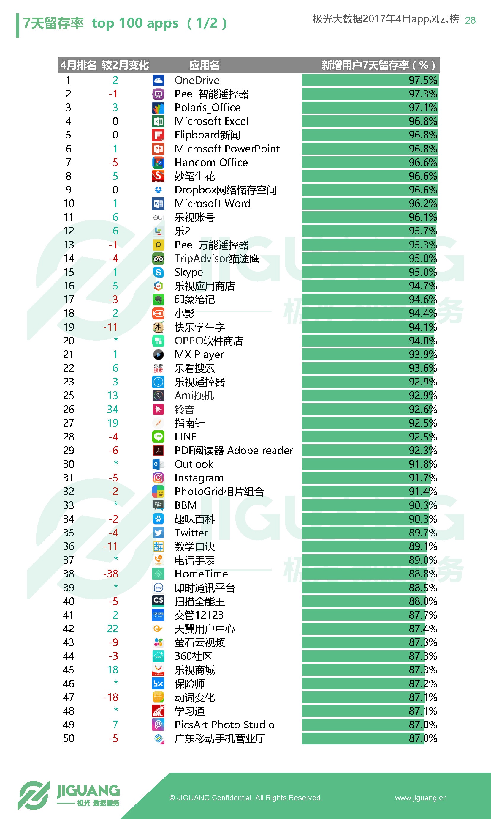 共享单车日渐火爆,ofo与摩拜携手挺进渗透率百强,ofo月新增用户更是达到1830万,远超摩拜的710万,显示出后来居上的势头。银行类App集体走强,中国建设银行渗透率及DAU双双领跑银行类榜单。国内领先的移动大数据服务商极光大数据推出《app风云榜——4月app榜单》,从市场渗透率、日活跃用户、新增用户数、7天留存率等关键指标为您解读国内App的现状。并推出新零售新业态品类榜、共享经济品类榜、金融品类榜、娱乐至上品类榜等分类榜单。