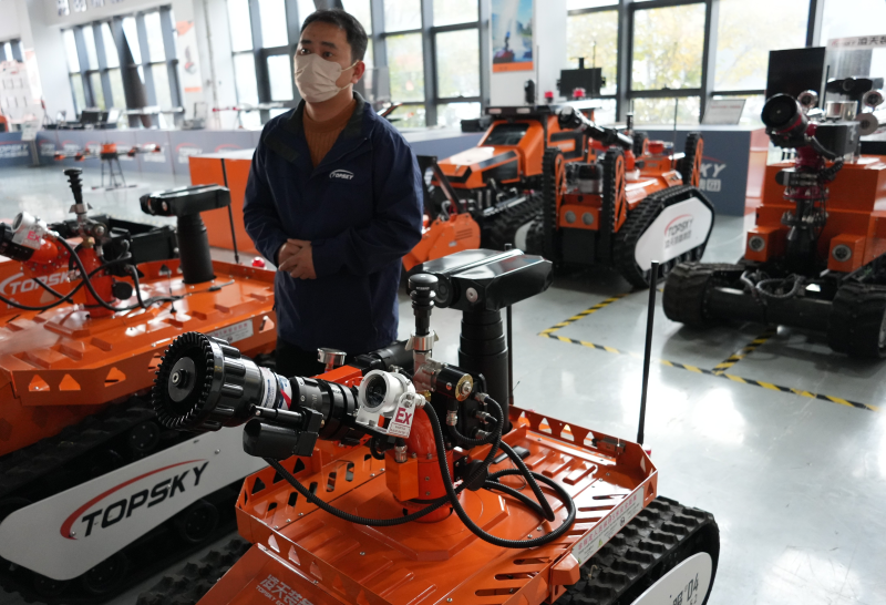 “它可以在3分钟内喷射一个标准游泳池的水量。”据于海伦介绍,该灭火机器人具备灭火、音视频侦察、有毒有害气体侦察、灾区环境侦察等功能,在抢险救援中可以发挥巨大作用,能替代消防员在危化火场或浓烟火灾现场进行救援。