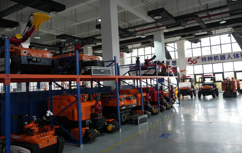 除了灭火机器人,鲁班智能的展示厅内还陈列着可在水面快速行进的水上遥控救援机器人、适应复杂地形的防爆无人机、水陆两栖的全地形车等各类装备,展现了在多元灾害场景中的技术布局。
