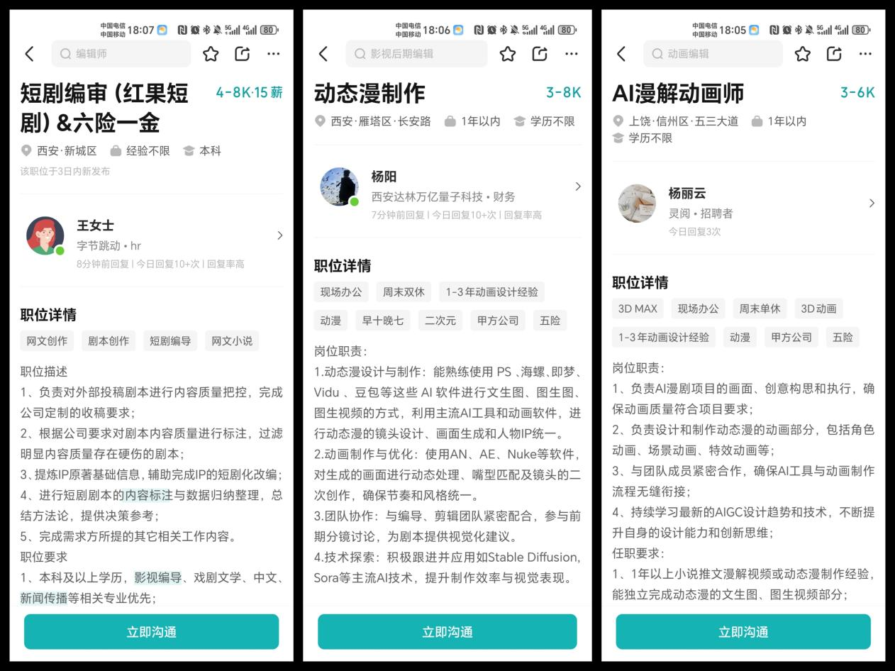 一方面说明行业对于“内容创作+AI技术”的复合型人才缺口较大,准入门槛低,另一方面也说明企业对该赛道的长期看好,愿意培养更多人才。