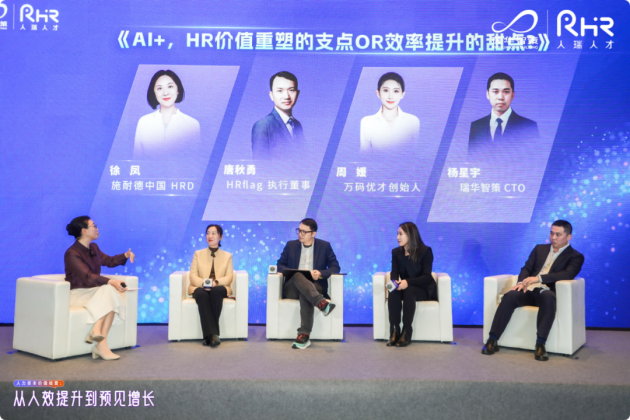 随后施耐德中国人力资源总监徐凤、HRflag执行董事唐秋勇、万码优才创始人周媛、瑞华智策CTO杨星宇等圆桌嘉宾,围绕“AI+,HR价值重塑的支点or效率提升的甜点?”展开激烈思辨。讨论聚焦AI在HR领域的确定性价值、落地场景选择、变革中HR的核心角色及AI应用ROI理性评估等核心议题,嘉宾们从实践落地、技术赋能、价值边界等维度碰撞出诸多前沿观点,为现场观众带来多元启发。