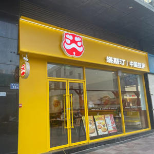 具体来看,塔斯汀中国披萨门店以明黄色为主色调,这点与主色调为中国红的塔斯汀中国汉堡较为不同。不过在其门头中央,塔斯汀中国披萨的门店依然保留了品牌标志性的红色醒狮logo,延续了塔斯汀品牌的辨识度。