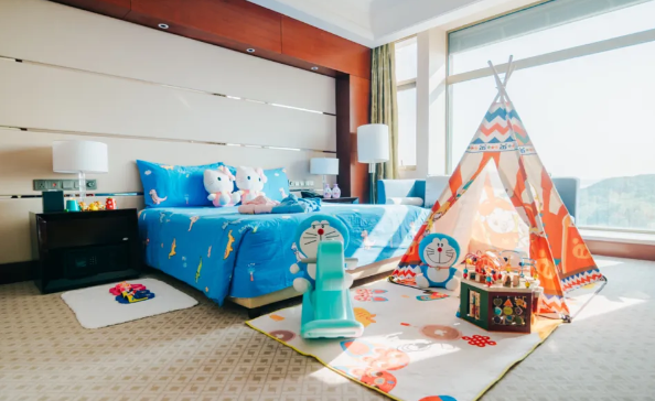 酒店内的休闲设施一应俱全,宾客可免费使用游泳池、健身房及室内外儿童乐园。特别值得一提的是,酒店推出了多项娱乐活动:丛林探险项目将高低错落的关卡巧妙隐匿于枝叶之间,营造出童话般的绿野仙踪体验;卡丁车场地让游客感受速度与激情的快乐;真人镭射CS提供沉浸式战场体验;射箭场则让人体验命中目标的成就感。此外,还有专为儿童设计的迷你高尔夫球场,以及适合亲子共游的湖景骑行活动,让宾客不出酒店即可享受全天候的娱乐体验。