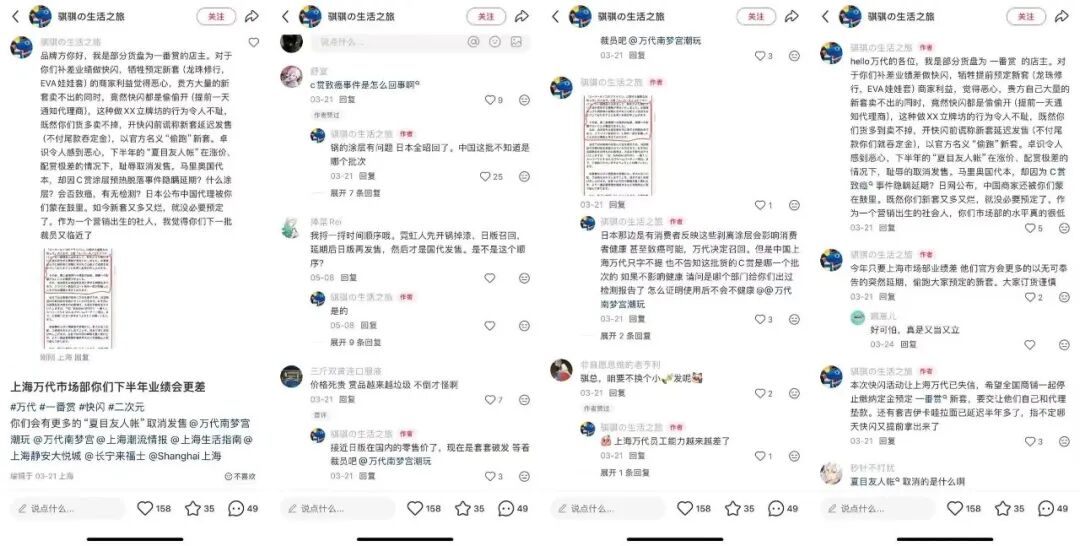 更深入行业层面,万代中国代理商控货、新套品质下降等问题在店主圈内引发广泛批评,有合作店主发文指责品牌方在库存管理上牺牲渠道伙伴利益,“货多卖不掉”就开快闪清库存,牺牲预定商家利益,并对部分产品涂层脱落事件的“致癌”安全性提出质疑。这些事件共同指向万代在中国的快速扩张中,供应链管理、品质控制和客户服务体系未能同步提升的风险。