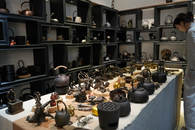 这里不光是马小林工作的地方,也是他与艺术爱好者和友人交流技艺、品茶聊天的“港湾”。他告诉界面新闻,除了艺术品售卖,在这里游客可以参观铁壶的制作过程,感受非遗魅力,还能体验茶艺表演,参加文化交流等活动。