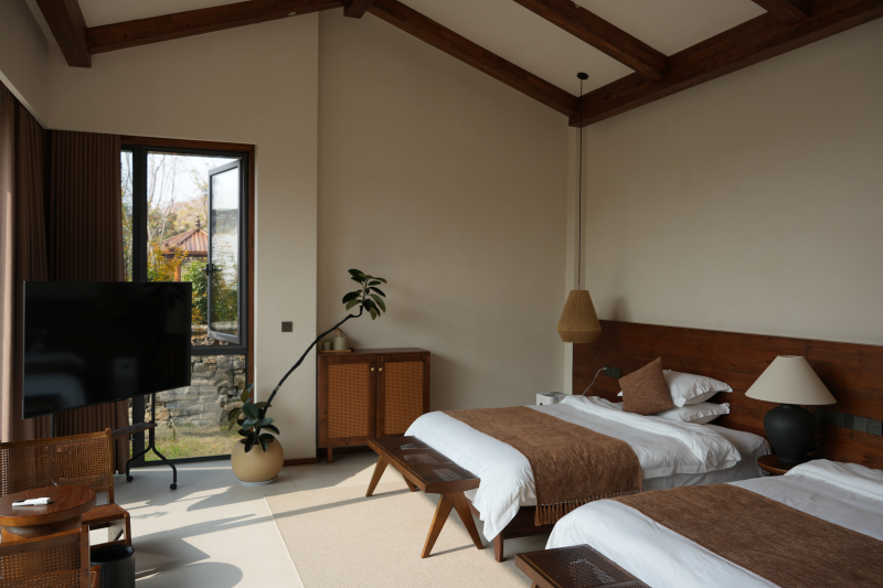 肖山介绍,石屋民宿建成后,面包房、咖啡馆、啤酒屋、农耕文化体验馆、油葵榨油坊等业态相继落地,梁堂村内一条涵盖“吃住行游购娱”全链条的乡村消费场景逐渐成形。整村于2024年10月正式对外营业。