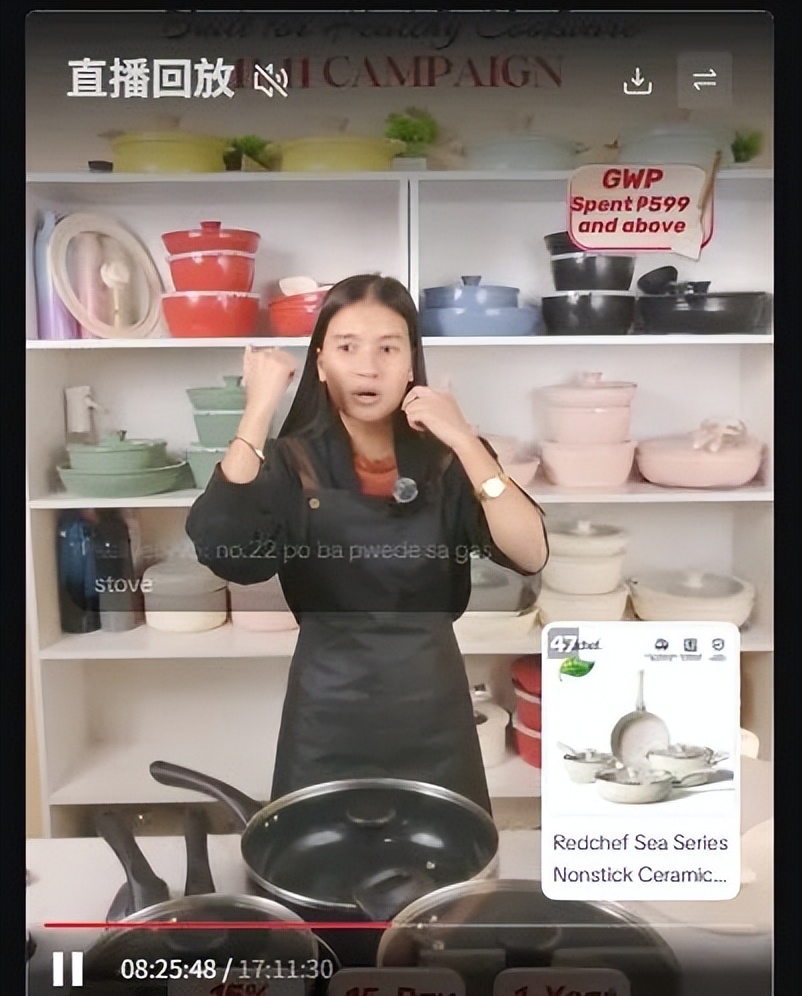 在菲律宾市场,厨具品牌Redchef以“短视频预热 × 达播造势 × 自播转化”的组合链路,成功引爆新品与高客单商品。其先通过500多条短视频进行前置蓄水,再以达人直播拉升声量,通过真实演示让用户“看到问题被解决的过程”。