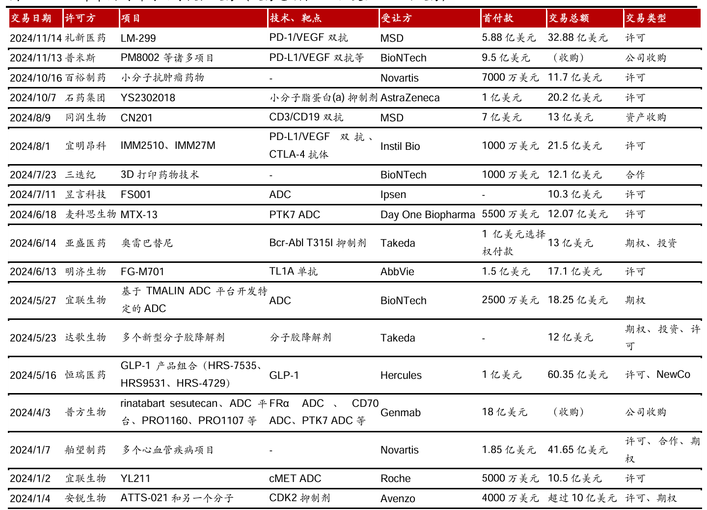 近两年,中国的双抗和ADC类药物都十分出彩,这还加速了中国药企的出海进程。在2024年,仅是交易总额在10亿美金以上的对外授权交易,就有将近20起。