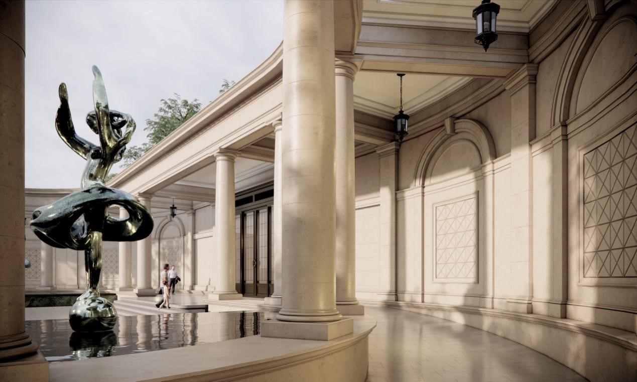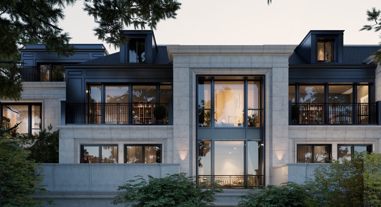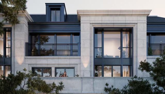 整体建筑设计深研伦敦切尔西豪宅美学内核,以低密规制为基底,将优雅格调与艺术细节融入建筑肌理。乔治亚风格的三段式比例,结合大面积的玻璃与金属线条,最终实现的是更优的室内采光、更具延伸感的视觉空间,以及建筑历久弥新的挺拔姿态。