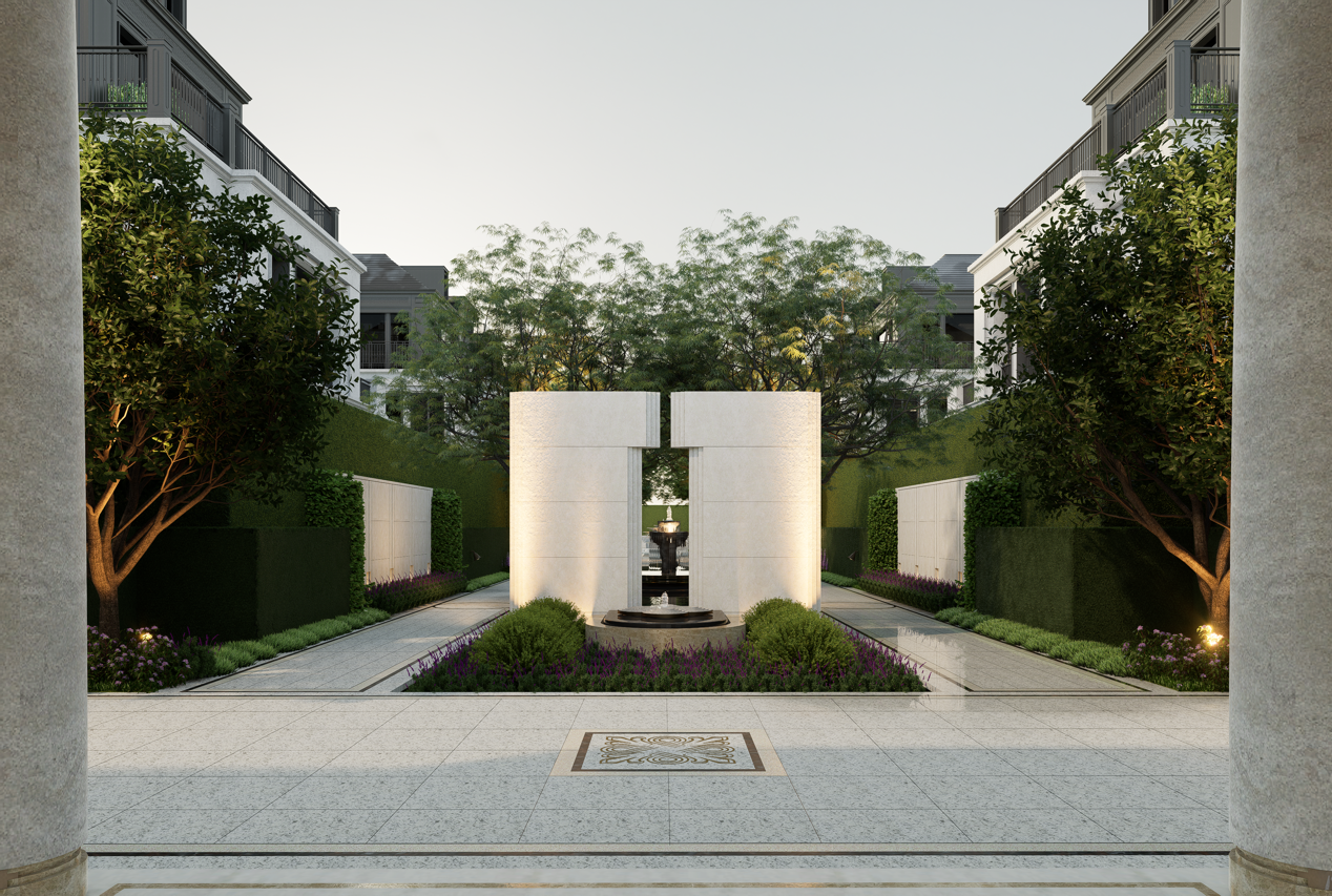 在社区景观与建筑打造上,项目深度溯源伦敦豪宅住区的营造逻辑,特邀goa、朗道、CCD、水平线等国际一线设计团队联袂操刀。设计以“松弛感与秩序感”为核心,将建筑与自然景观有机融合,既通过规整的布局彰显豪宅的仪式感,又以错落的绿植、通透的视野营造松弛惬意的居住氛围。