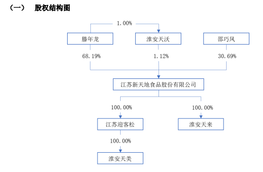 公开转让说明书透露,新天地的董事长、总经理滕年龙直接持有新天地68.19%股份,同时还通过淮安天沃企业管理合伙企业间接控制新天地1.12%股份的表决权,为公司的控股股东。其妻邵巧凤则担任公司的副董事长,直接持有新天地30.69%股份。这也意味着,滕年龙与邵巧凤夫妻就合计控制新天地100%的股权。