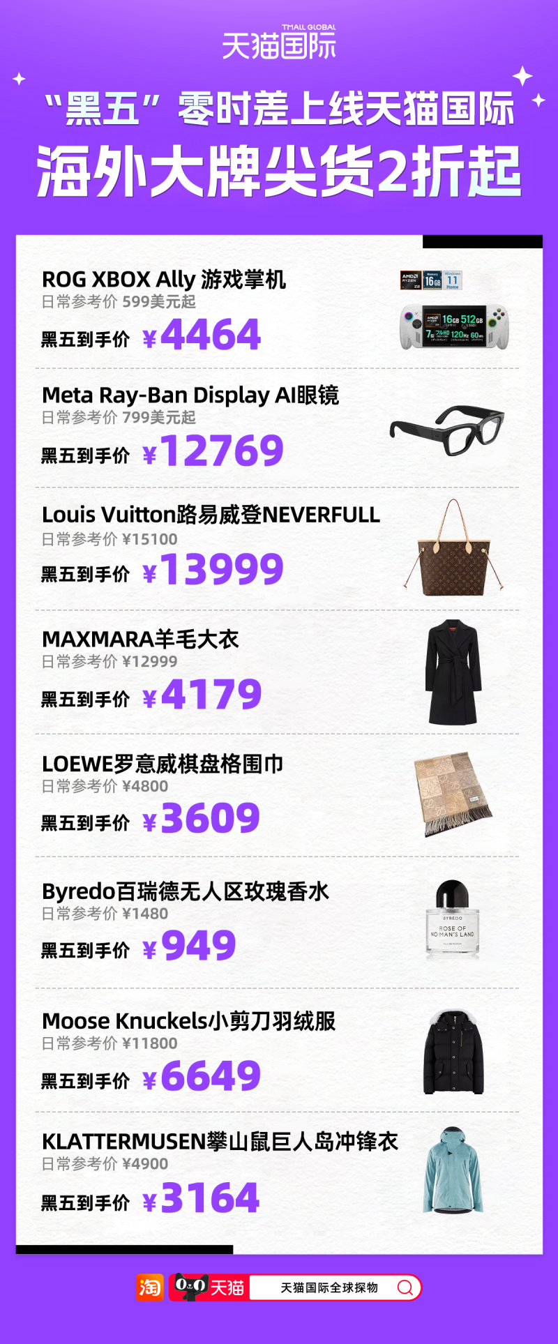 据了解,有2万多个海外品牌,800多万款进口商品和海外“黑五”同步零时差上线天猫国际,大牌尖货低至2折起。