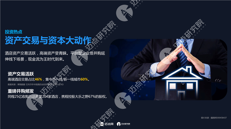 酒店资产交易活跃,高端资产受青睐。平台型企业借并购延伸线下场景,现金流为王时代到来。2020-2025年,高端酒店资产交易占比达46%,这类资产具有“抗周期能力强、长期收益稳定”的特点,成为长期资本的优选。重磅并购频发:同程旅行斥资25亿收购万达商管100%股权,获得204家高端酒店资产,快速补齐高端产品线;携程收购大乐之野67%股权,切入精品民宿赛道,完善“高星酒店+民宿”产品矩阵。这些资本动作背后,是行业整合加速,头部企业通过并购快速扩大规模、完善业务布局,同时也是资本对酒店行业长期价值的认可。