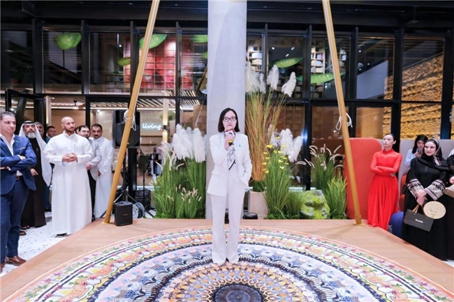 剪彩仪式上,施银娇、Hisha等手持金色剪刀裁开蓝绿色彩带,圣奥中东各国的经销商与沙特当地的嘉宾共同见证这一高光时刻。