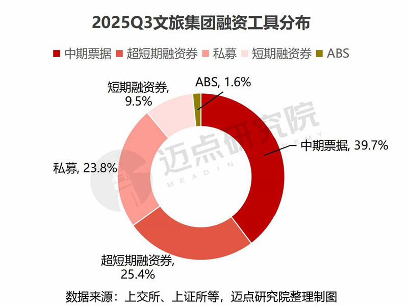 三季度各文旅集团融资工具品种多样,包括中期票据、超短期融资券、私募、短期融资券、资产证券化ABS。其中,中期票据占比最高,具体为39.7%;中期票据具有流通性强、结算速度快、票据安全性较高、发行方式灵活、发行成本较低等特点与优势,广泛应用于企业的资金筹措和债务管理中。