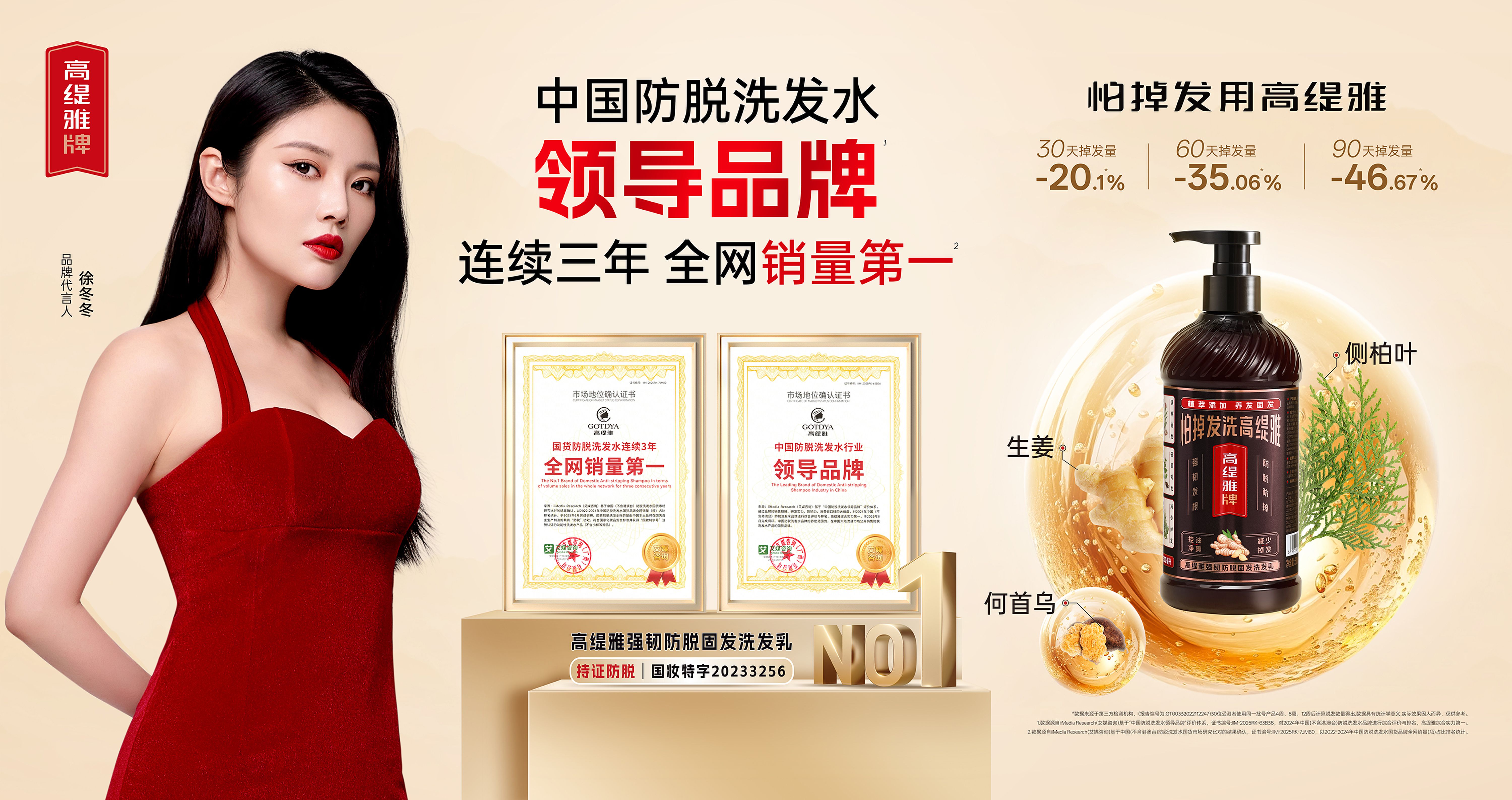 作为一家已有15年历史的、深耕国人头皮护理领域的国货品牌,高缇雅始终以 “打造适合中国人头皮的防脱洗发水” 为核心目标。凭借对东方草本植物的深入研究与现代科技的融合应用,品牌于 2025 年 6 月斩获艾媒咨询市场地位声明 ——“国货防脱洗发水连续三年全网销量第一” 及 “国货防脱洗发水行业领导品牌”,成为千万消费者信赖的标杆品牌。