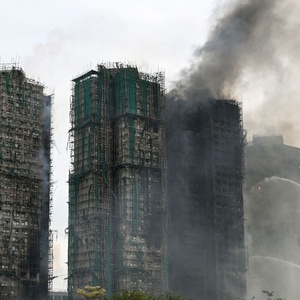 此前在11月27日凌晨,界面新闻记者从香港新界北总区刑事总部高级警司钟丽诒处了解到,香港消防处进行灭火及搜救过程中,发现建筑物外墙有部分安装的保护膜、防水帆布、塑胶布等物品,怀疑不符合防火标准。