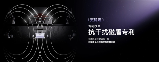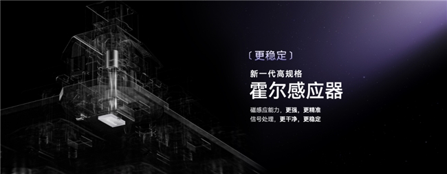 为了做到更稳定,“源点星链”方案通过 Magic 磁感优化技术,让磁通量感知提升30%,采用全新一代旗舰级的霍尔传感器,这款传感器抗温漂能力更强,噪声更低,其输出信号的抖动幅度仅2mV,远低于市面上所谓"第三代霍尔"的 11mV,还创新式带来邻键抗干扰专利技术,让键盘在游戏操作中的抗干扰性提升 60%。