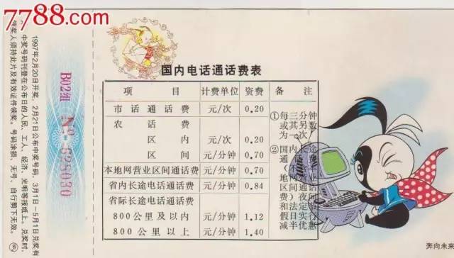(1997年电信标准资费宣传材料)