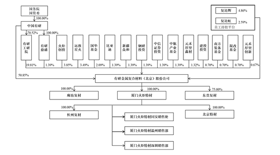 截至招股说明书签署日,中国有研直接持有有研复材50.85%的股份,并通过控股子公司有研工研院间接持有有研复材19.81%的股份,通过全资子公司有研鼎盛间接持有有研复材1.39%的股份,合计控制有研复材72.06%的股份,为有研复材的控股股东。由于中国有研为国务院国资委100%出资的企业,因此国务院国资委为有研复材的实际控制人。