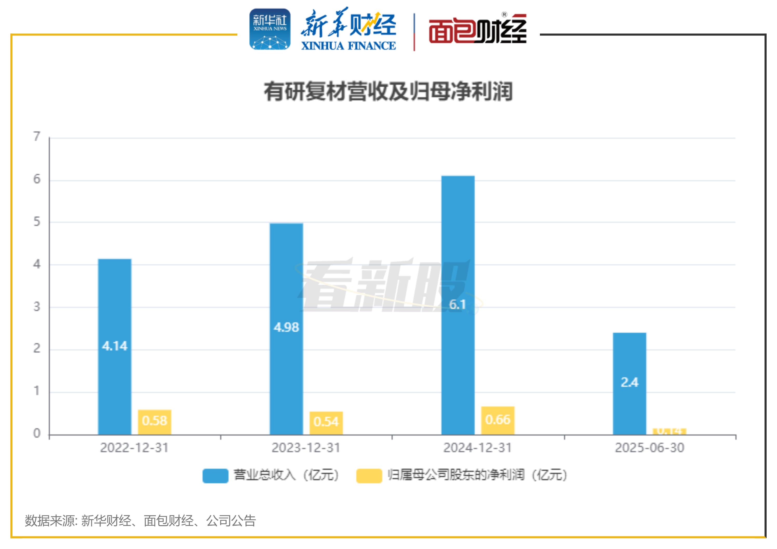 招股书显示,2022年及2025年前6个月,有研复材的营业收入分别是4.14亿元、4.98亿元、6.1亿元和2.4亿元,整体呈增长趋势。
