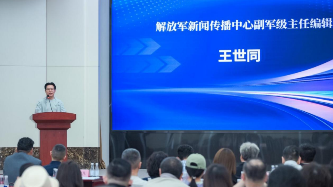 图为解放军新闻传播中心主任编辑王世同讲话致辞