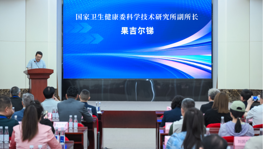 图为国家卫生健康委科学技术研究所副所长果吉尔锑发表讲话致辞