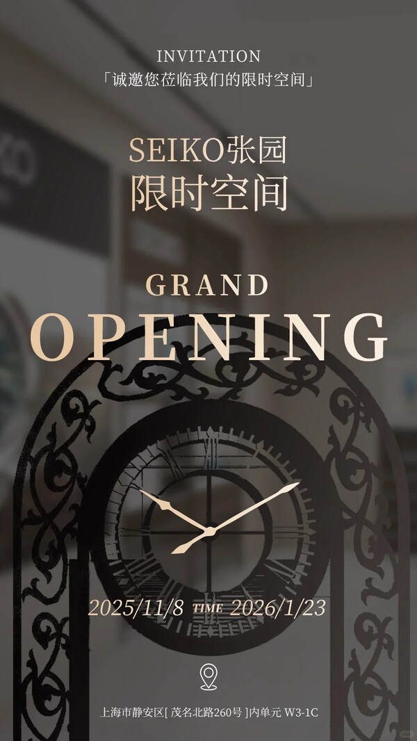 因此在金秋时节,2025年11月8日至2026年1月23日,SEIKO(精工)选择在上海张园开启了全新限时空间——