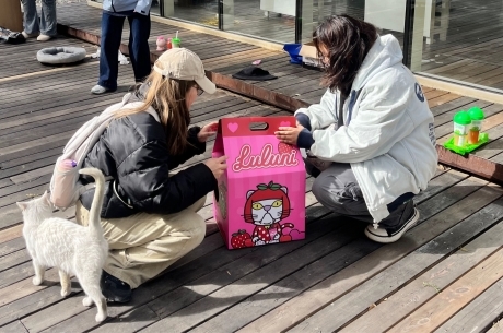 捐赠仪式结束后,柠季工作人员与复旦学子一同走进校园角落,安置猫窝、科学投喂猫粮,并通过逗猫棒与小猫互动。镜头下,一只只小猫好奇地靠近新安置的猫窝,与同学们嬉戏玩耍。冬日的阳光洒在小猫与参与者的笑脸上,定格下温暖瞬间。这一刻,不仅是公益行动的生动体现,更是“用行动守护生命,用善意连接彼此”理念的真实写照。