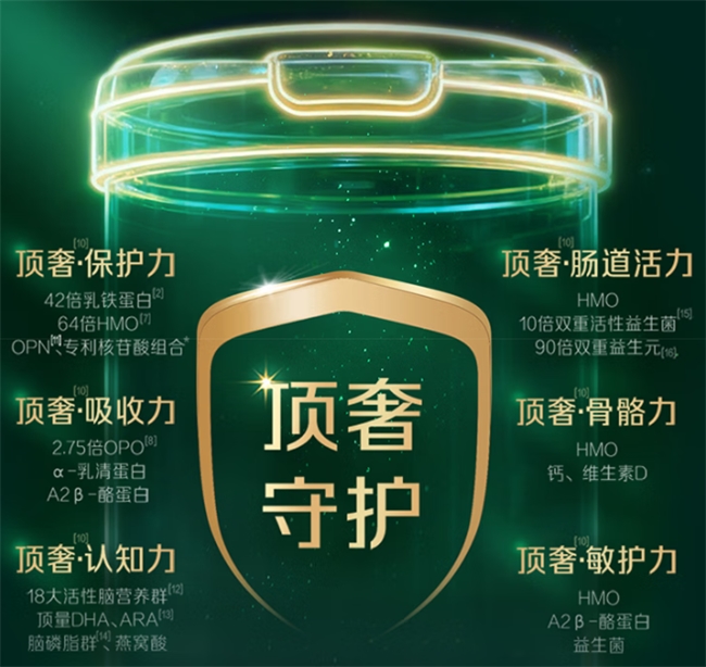 金领冠珍护源初的卓越,在于打破单点营养逻辑,构建“保护-吸收-发育”闭环: