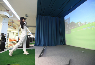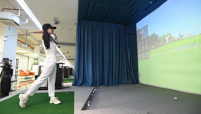 玩家可以实时回看自己的打球动作、及时调整,体验高尔夫的乐趣。图:记者 秦李欣/摄