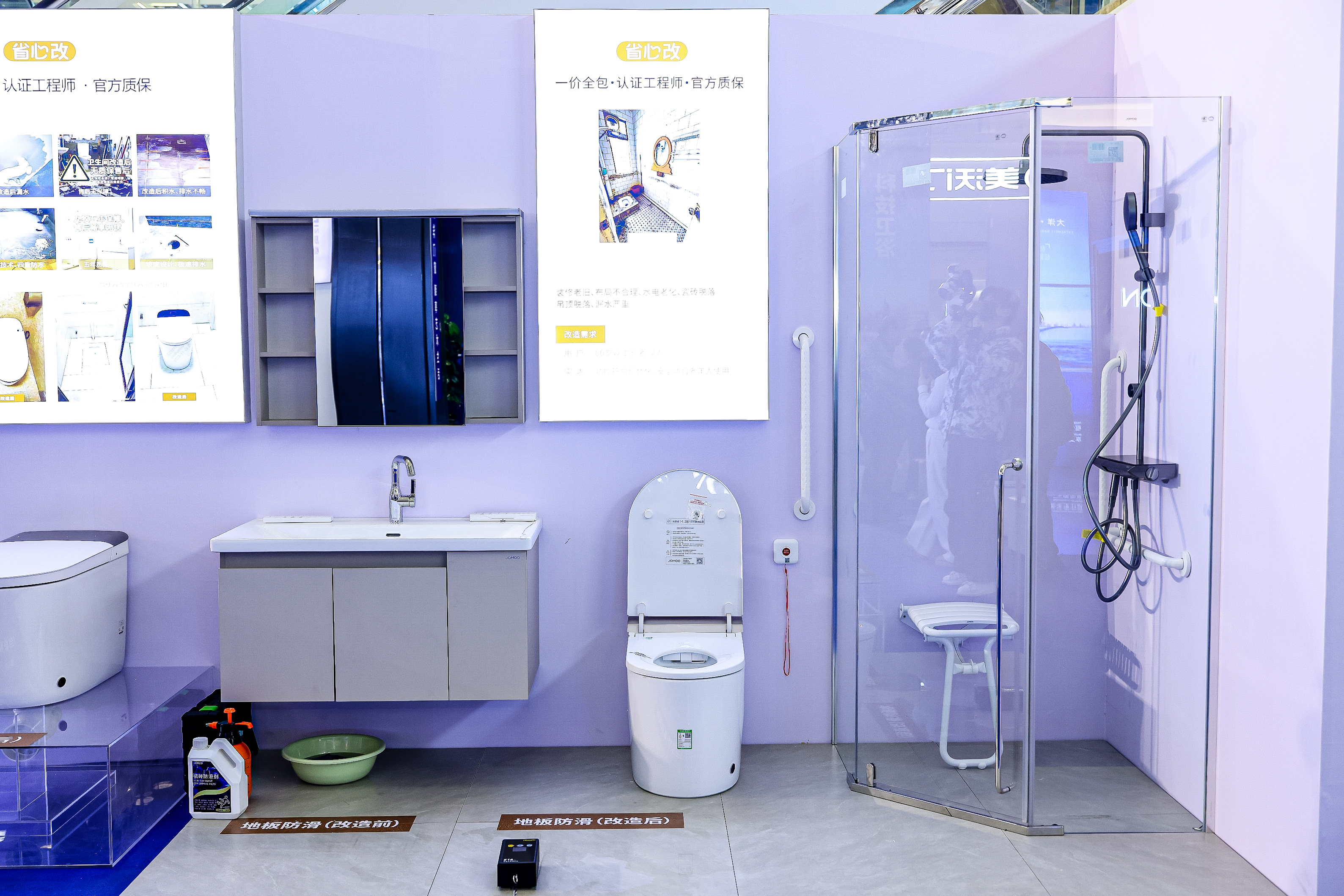 其中,淋浴场景“省心装”服务,针对装修不规范、水口歪斜等,30万家庭淋浴器无法安装以及10万家庭淋浴器安装不美观的问题,通过水口热熔改造技术、水口移位改造技术、瓷砖修补技术、原厂专供备件等方式,实现淋浴器30分钟极速焕装;调研数据显示,全国3500万浴缸用户中,85%的用户每年使用次数少于五次,针对此浴缸超低使用率问题,推出浴缸改淋浴房“省心改”服务,大大提高洗浴空间实用性;全国6000万淋浴房用户正面临霉菌孢子超标4倍,以及淋浴房产品表面顽固水垢问题,“省心用”服务通过树脂打磨除垢技术去除淋浴房顽固污垢,纳米覆膜技术确保长用如新。