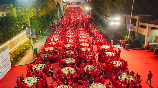 庆典当晚,意尔康工业园区化身为一片温暖与喜悦的海洋——一场专为全体员工与事业伙伴筹备的“万人家宴”盛大举行。全体意尔康员工欢聚一堂,在灯火与美食中共叙情谊,共同见证这一承载了三十年奋斗与情谊的温情时刻。