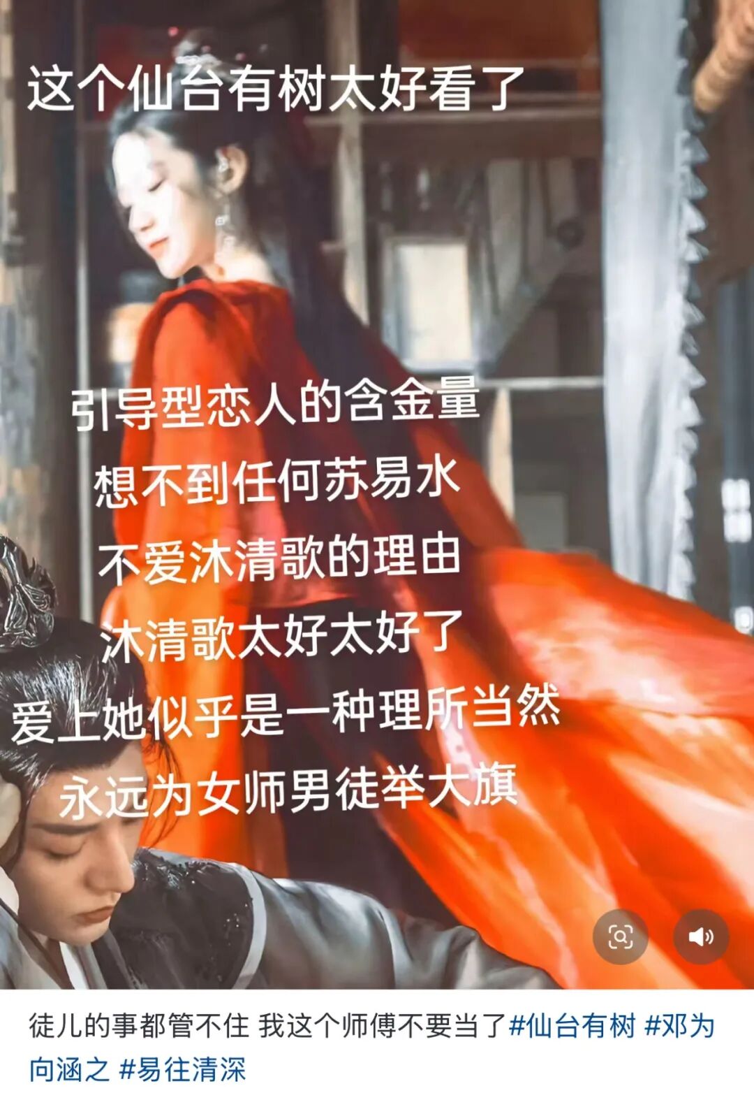 这种引导模式在仙侠的师徒恋里更加泛滥。一个劣徒啥也不会到处闯祸,师父教他做人做事最后两人爱得如火如荼。《花千骨》就是早期的引导与被引导模式,到了《仙台有树》就不够用了。前一世,女的当男主师父。后一世,男的当女主师父。你引导我成为了现在的我,现在的我引导你成为将来的你,再通过转世轮回和角色互换达成一种“引导力守恒”。