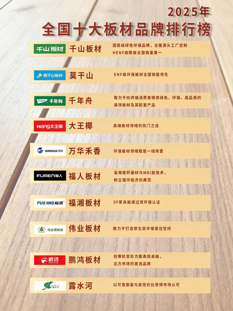 2025全国十大板材品牌排行榜的发布,不仅是对板材行业优质品牌的认可,更是对健康家居消费需求的响应。而千山板材,将为更多家庭实现“安心、省心、美观”的理想家居生活。