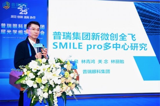 普瑞眼科医院集团副总院长刘泉教授分享了《普瑞集团新微创全飞SMILE pro多中心研究》。通过多中心近700眼术后数据分析得出,新全飞SMILE pro手术在矫正近视及散光方面展现出卓越的有效性、安全性与稳定性,其精准的散光矫正能力与可控的像差表现,共同保障了患者优异的术后视觉质量和术中体验。