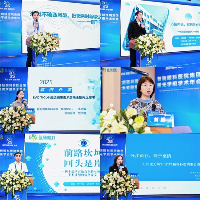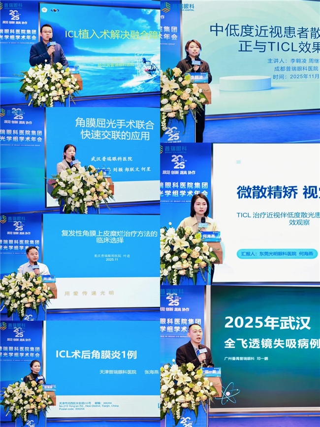 为期两天的学术议程,设置了多个专题板块,覆盖角膜屈光手术、复杂ICL应用、交联联合手术、圆锥角膜与老视矫正等热点领域。来自普瑞集团各医院的医师分享了角膜屈光手术联合快速角膜交联术、ICL术后拱高调控、TICL矫治策略、龙晶PR临床应用等实战内容,融合案例解读与数据洞察,为一线临床工作提供了新思路与新方法。