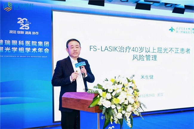 西安交通大学第一附属医院米生健教授在《FS-LASIK治疗40岁以上屈光不正患者风险管理》报告中,系统阐述了为40岁以上患者行FS-LASIK手术的风险管理经验。他指出,需针对患者特有的生理性改变与主观诉求,采取个性化单眼视设计、精确主视眼评估、医源性像差主动管理及术前适应性训练等综合策略,以期实现安全、理想的术后视觉效果并提升患者满意度。