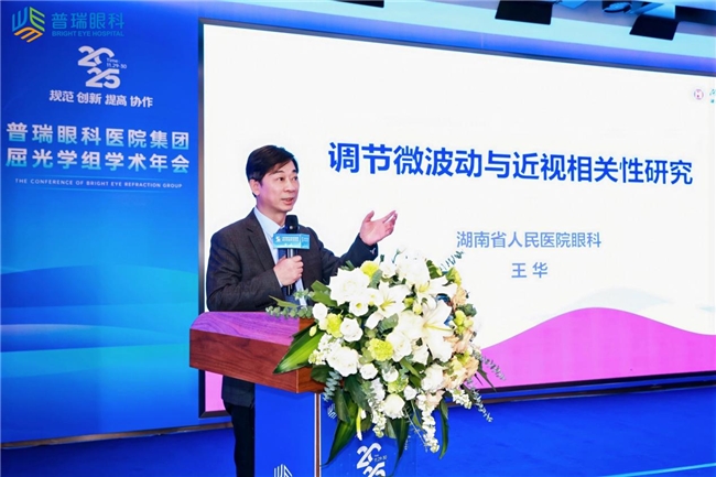 湖南省人民医院王华教授带来了题为《调节微波动与近视相关性研究》。他指出,调节微波动是评估近视风险与调节负荷的关键指标,其变化特征不仅可对假性近视、进展型近视进行早期筛查与分型,更能为制定个性化的近视防控方案(如光学矫正、药物干预与用眼行为指导)提供精准依据。
