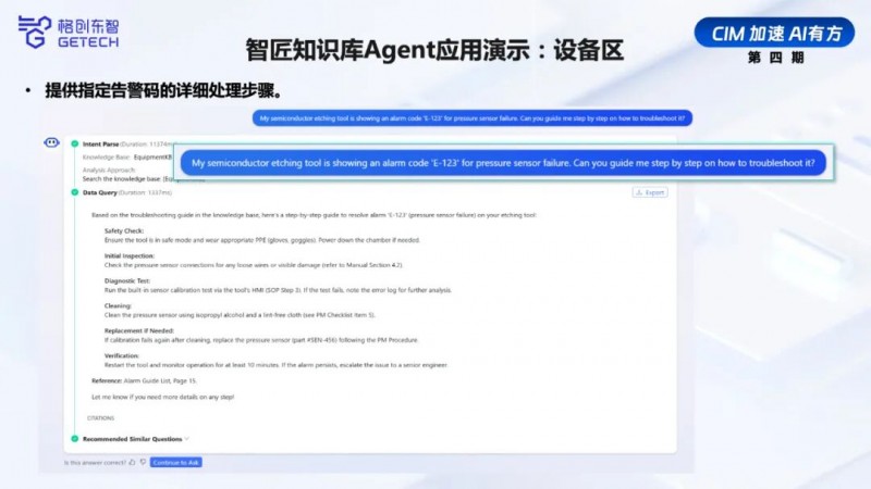 在某半导体客户的实践中,智匠成功解析了积累多年的工程报告、案例总结等文档,构建起覆盖设备知识、工艺经验、故障处理的体系化知识网络,工程师只需通过自然语言提问,就能获取精准的解决方案,显著提升了问题处理效率。证明了其在处理半导体专业知识上的卓越能力。