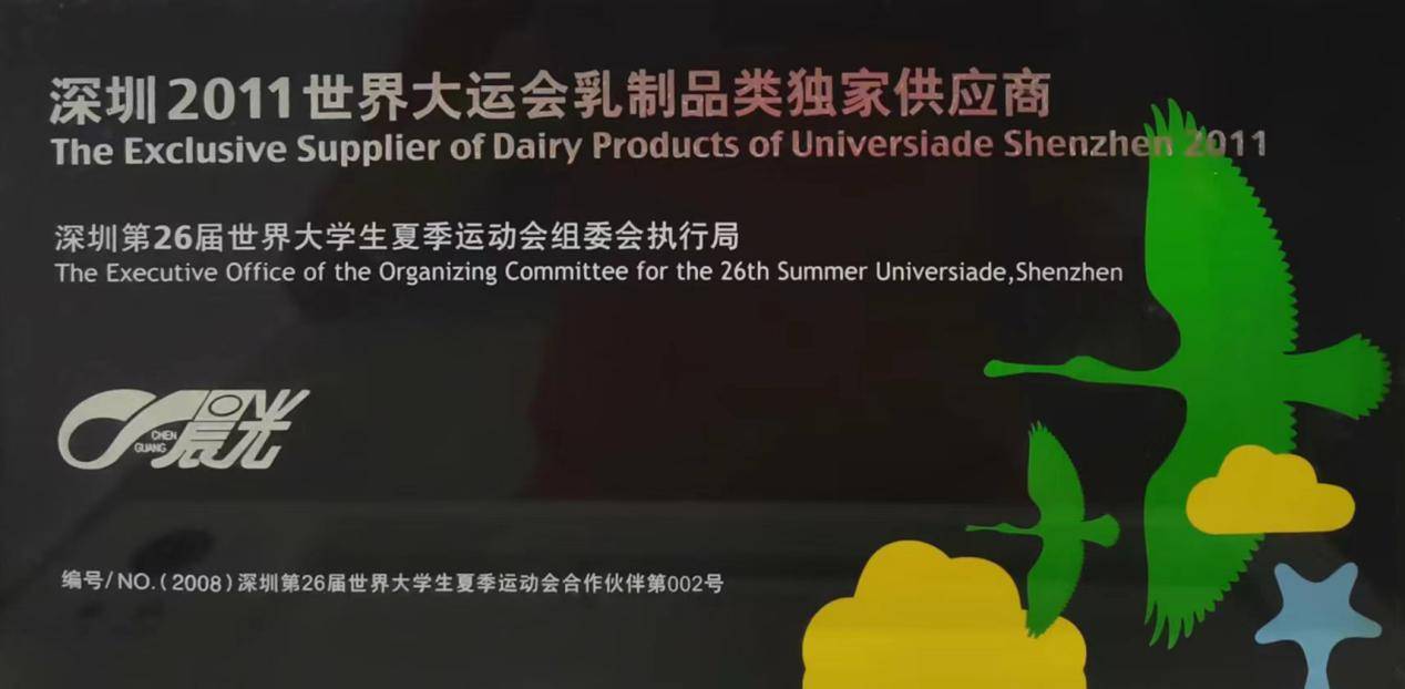 0激素、0抗生素、0化学农药的安心承诺,与晨光乳业曾服务大型赛事的高标准一脉相承。2011年,晨光乳业曾作为第26届深圳世界大学生运动会乳制品独家供应商,圆满完成赛事营养保障任务,荣获“第26届深圳世界大学生运动会食品安全保障工作优秀单位奖”。