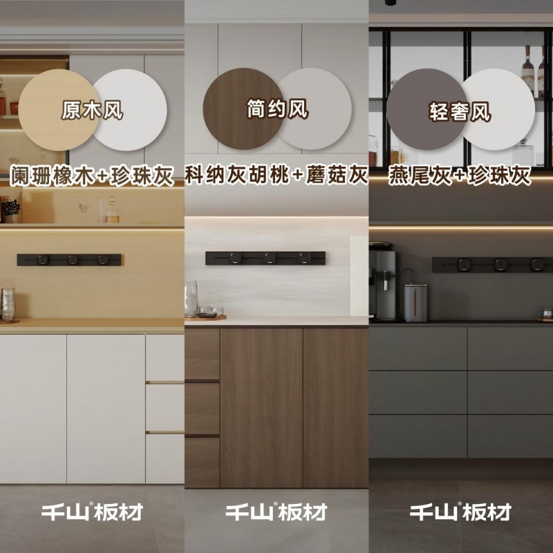千山板材旗下全线产品通过超国标环保HENF级与F4星双重认证,并具备净醛、抗菌、抗病毒三重防护,筑牢健康家居基石;共有五大产品、八大基材的产品体系覆盖高端门板、全能基材,更配套基装材料与29款门墙柜一体化系统,实现风格统一的整体美学;139款潮流花色,能够满足不同装修风格需求。