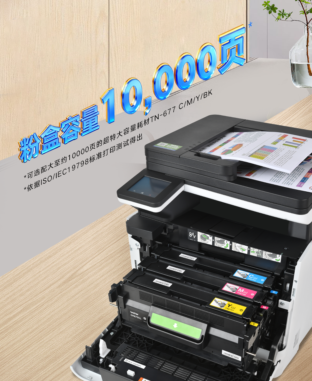 *可选配大至10,000页的超特大容量耗材TN677 C/M/Y/BK