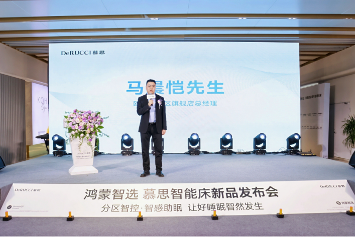 活动现场并未沿用传统产品宣讲的形式,而是以乐队暖场、“摇一摇”互动抽奖作为开场,营造出轻松且具有参与感的氛围。慕思集团经典事业部综合管理部负责人杨朋先生在致辞中,将郑州“包容务实”的城市气质与鸿蒙“开放协同”的生态理念相联系。他深入阐释:“我们正推动睡眠产业从‘硬件销售’向‘场景解决方案’升级。对慕思而言,这不仅是产品的迭代,更是品牌角色的重塑——我们从传统的寝具制造商,转型为以AI技术为核心的智能睡眠解决商。”